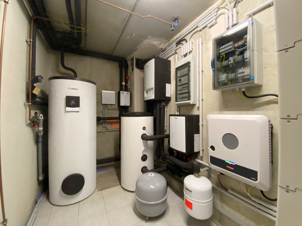 Ihr Haus ist auf dem neuesten Stand: Eine Vaillant Wärmepumpe mit Pufferspeicher gewährleistet Heizung und Warmwasserbereitung.