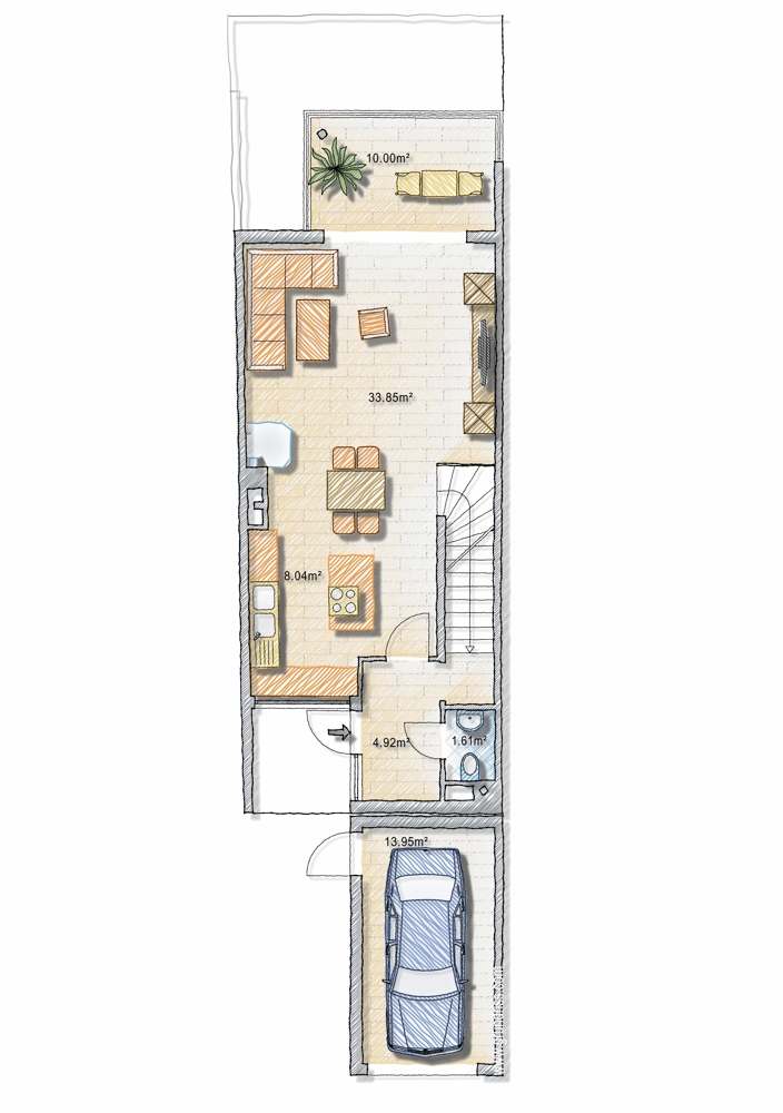 Der Preis von € 1.095.000,– bezieht sich auf das bezugsfertige, teilmöblierte Haus inkl. Keller auf 298 m² Eigengrund.