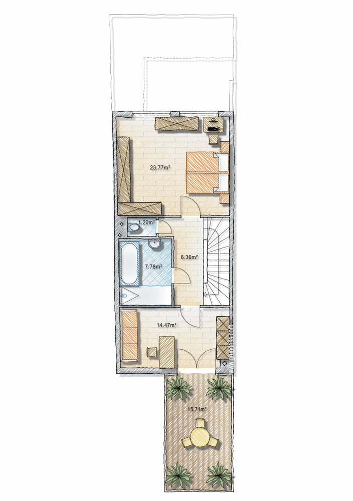 Das 2. Schlafzimmer bietet den Luxus einer eigenen Sonnenterrasse und wird Ihr stilvoller Rückzugsort.