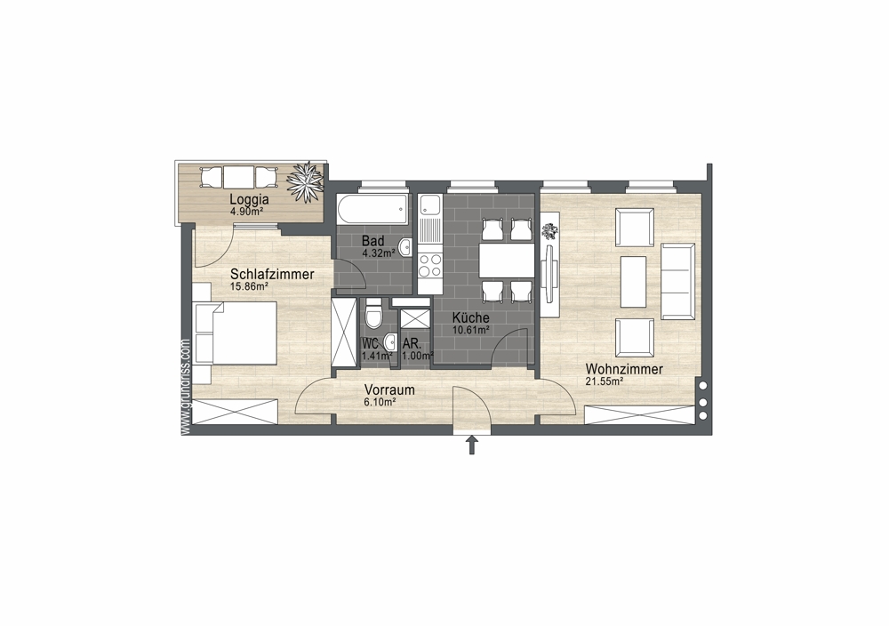 Wohnfl.: 61 m²