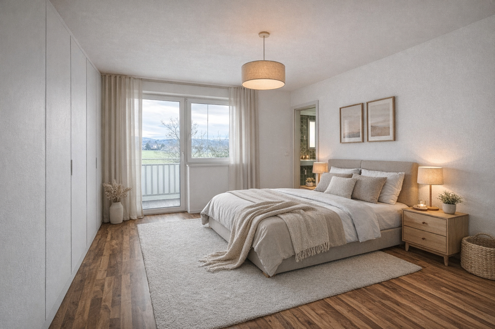 Ruhige 2-Zimmer-Wohnung mit Loggia & Parkplatz – herrlicher Grünblick