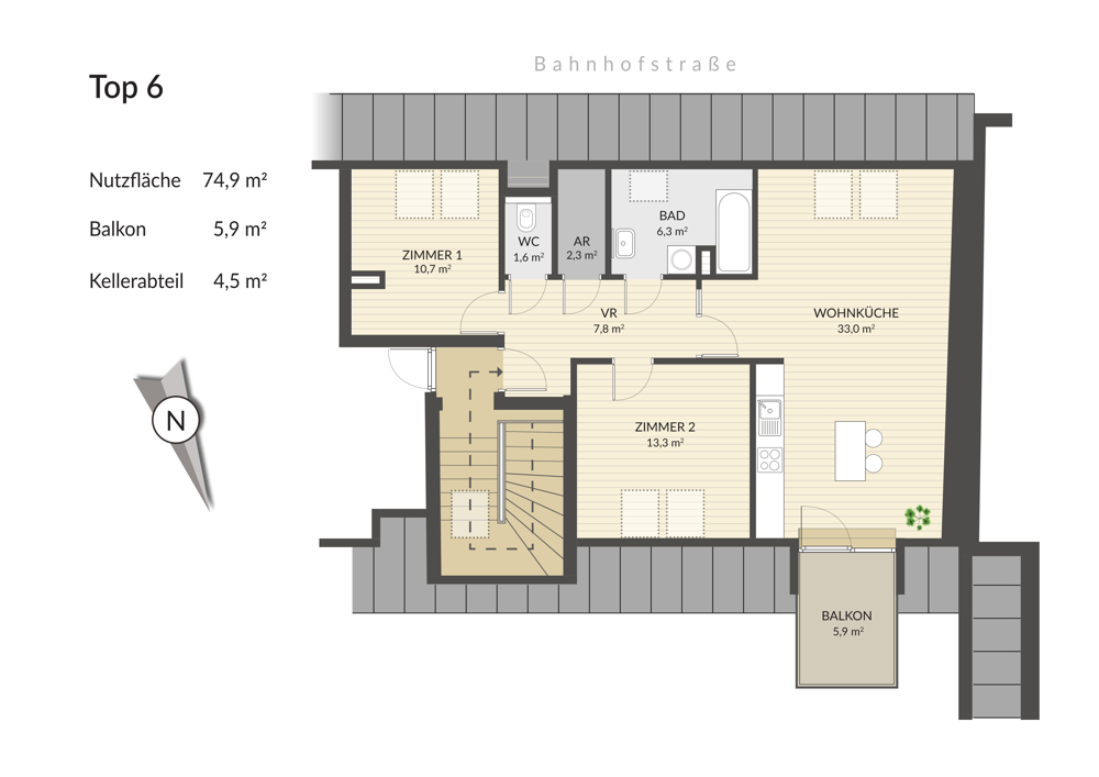 Wohnfläche: 74,90 m²